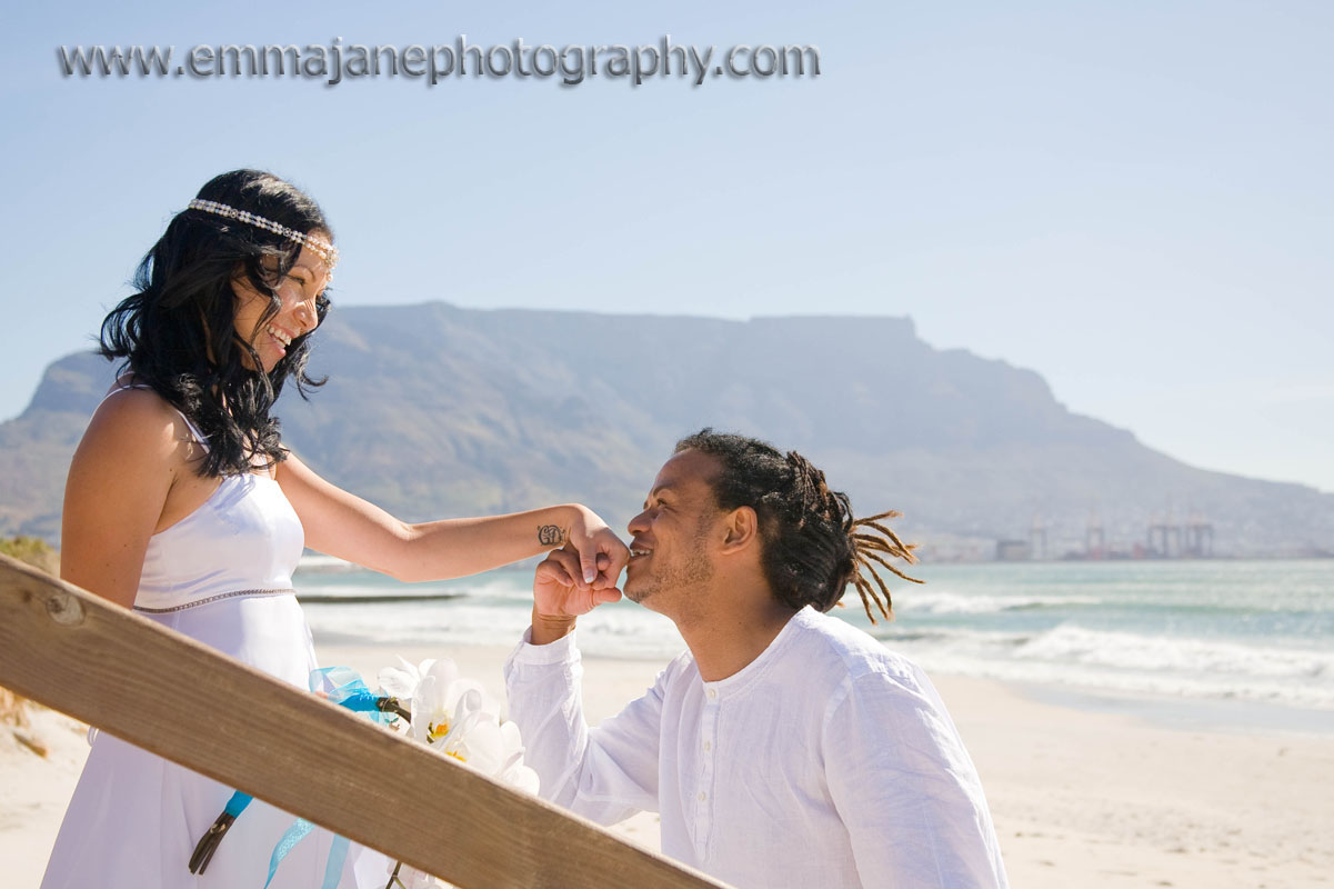 Table Mountain stood out prominently and made the perfect backdrop for a big group photos which we took on the beach before whisking the bridal couple off for an exclusive photo shoot on the beach a little further up. The conditions were perfect – mountain view, tranquil blue sea, gorgeous couple. We managed to get some amazing shots and since Celeste and Germaine were so natural and spontaneous, shooting them and capturing their day proved a dream!